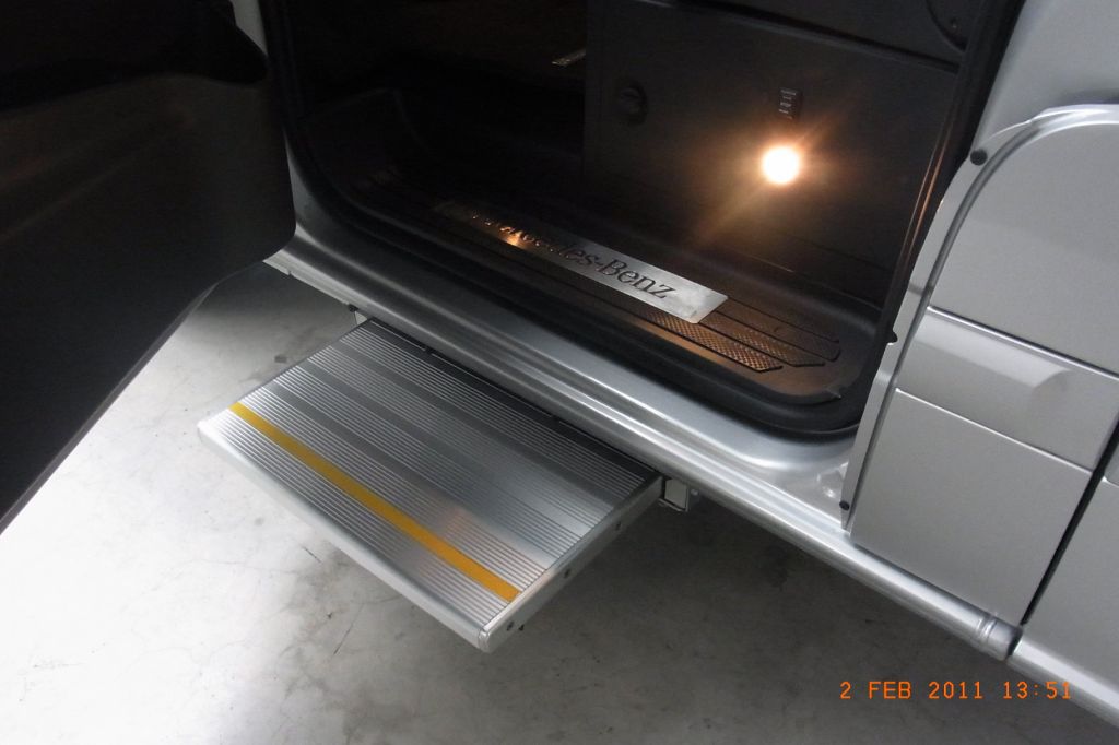 Die elektrische Stufe fährt automatisch mit Türkontakt aus und ein,